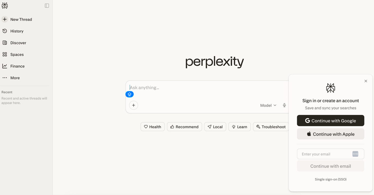 Perplexity is a great example, no signup friction, you’re just land in the product immediately.