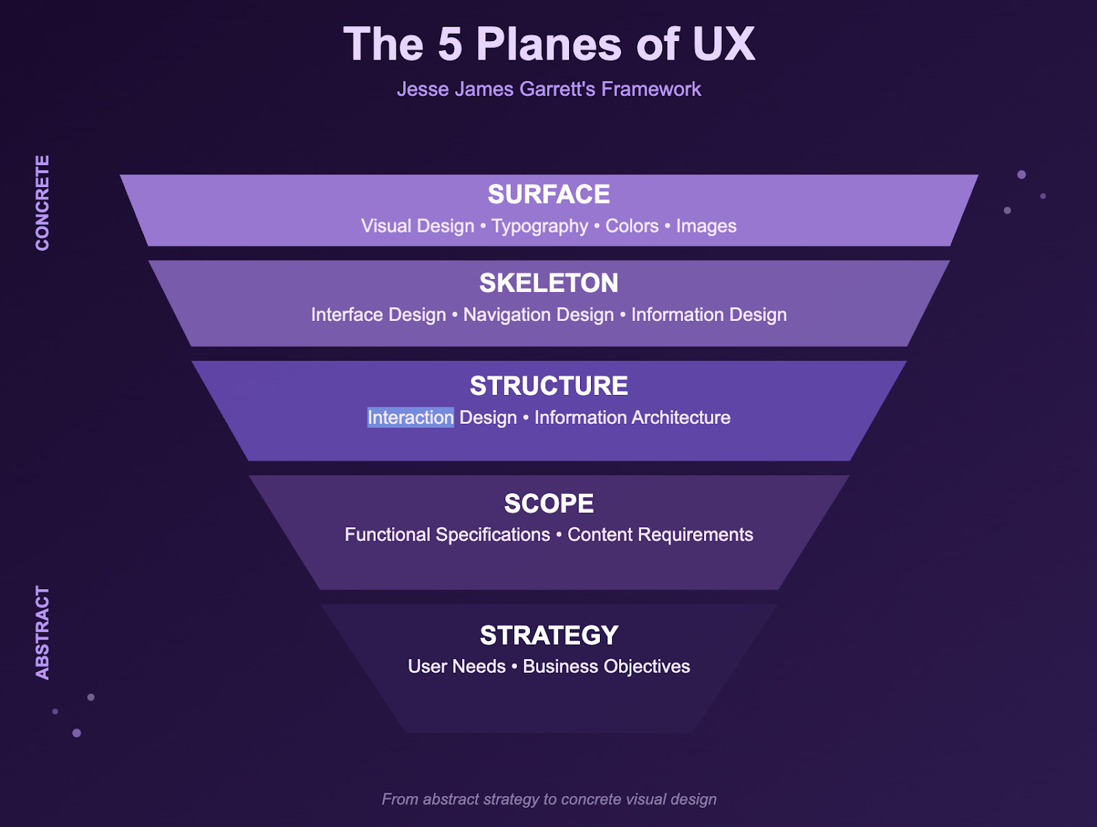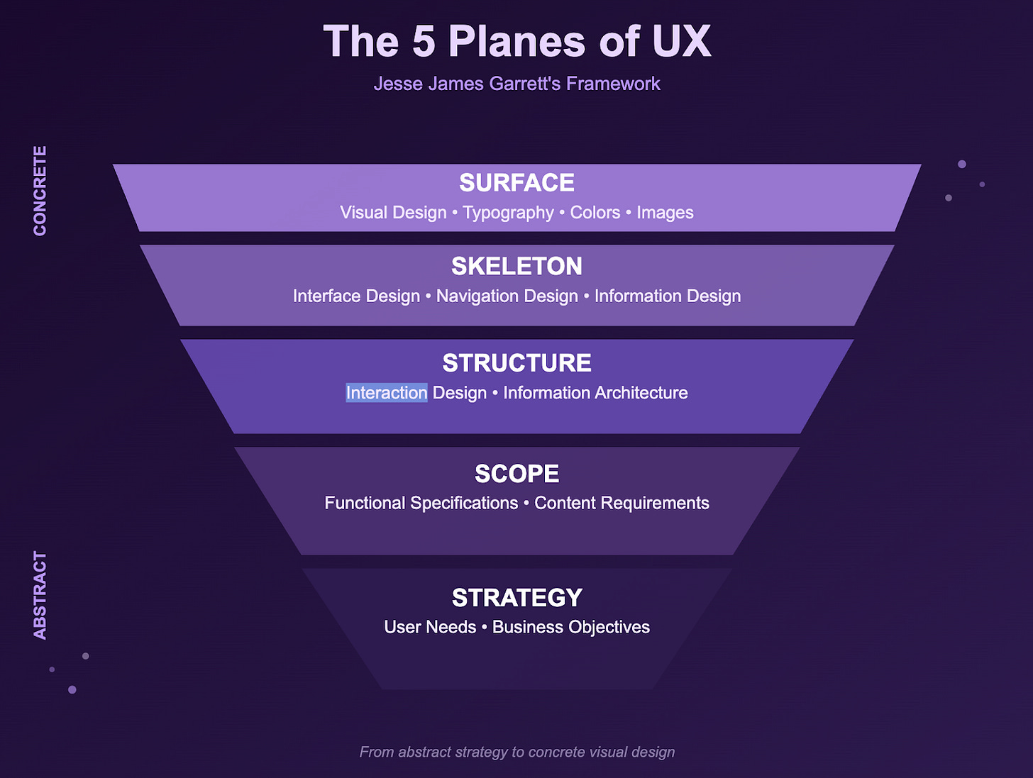 So how does taxonomy trickle into product strategy and its success? It happens through layers. As Jesse James Garrett explains through his framework on the 5 planes of user experience, the structure comes before the surface. In other words, the taxonomy comes before any name.