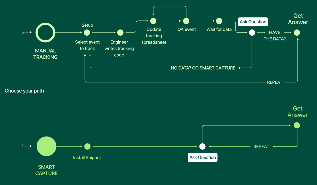 For Contentsquare, autocapture works a bit differently. So it was a strategic choice to move away from industry language and elevate this with a branded name: Smart Capture. It opens the conversation for Contentsquare to elaborate on a memorable differentiator.