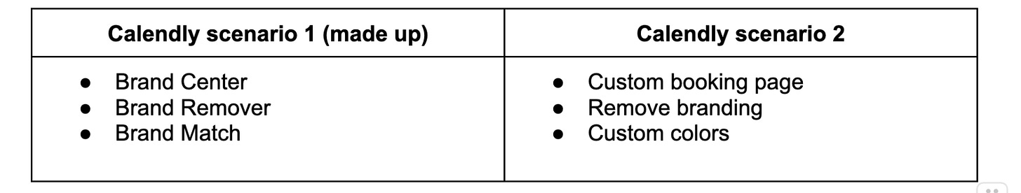 These names could influence how users see Calendly. Maybe “Brand Center” is actually a product rather than a single personalization feature? In a long list, like a pricing page or pitch deck, it might not even be clear that these 3 features even fit in the same category.