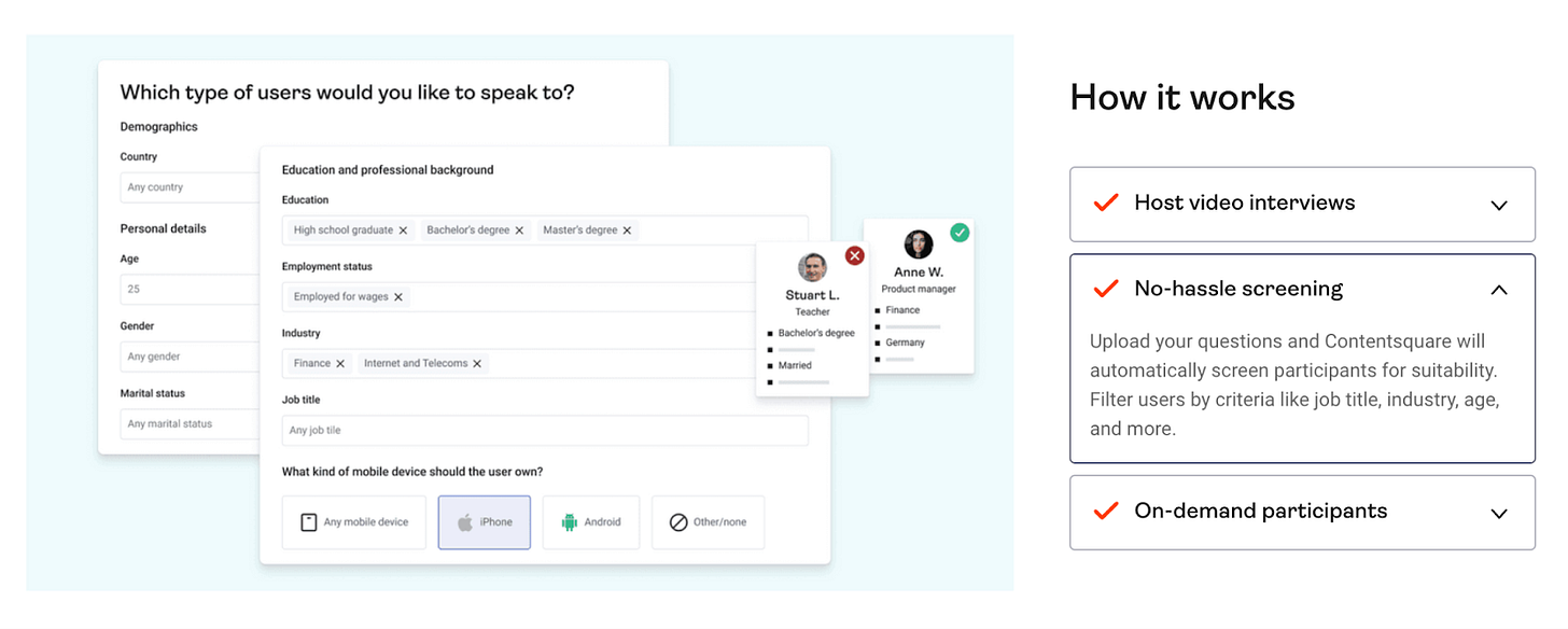 With that framework applied, screening, video interviews, and the participant pool were parts of a whole. Together, those features created a moderated research product that introduced Hotjar to a different market category and added a distinct value metric (interviews/month).