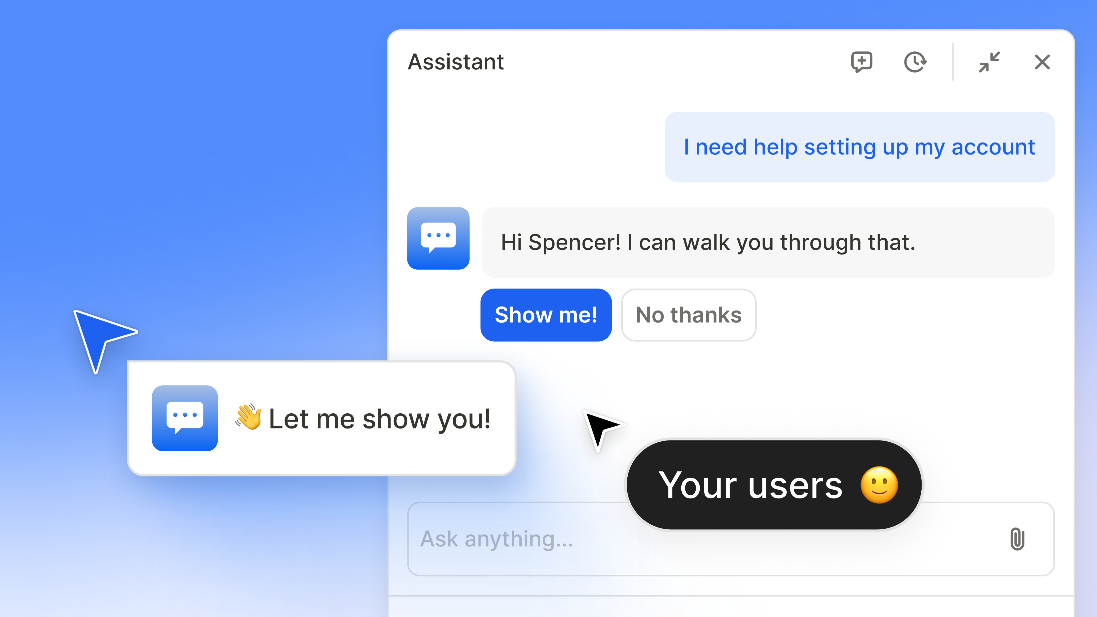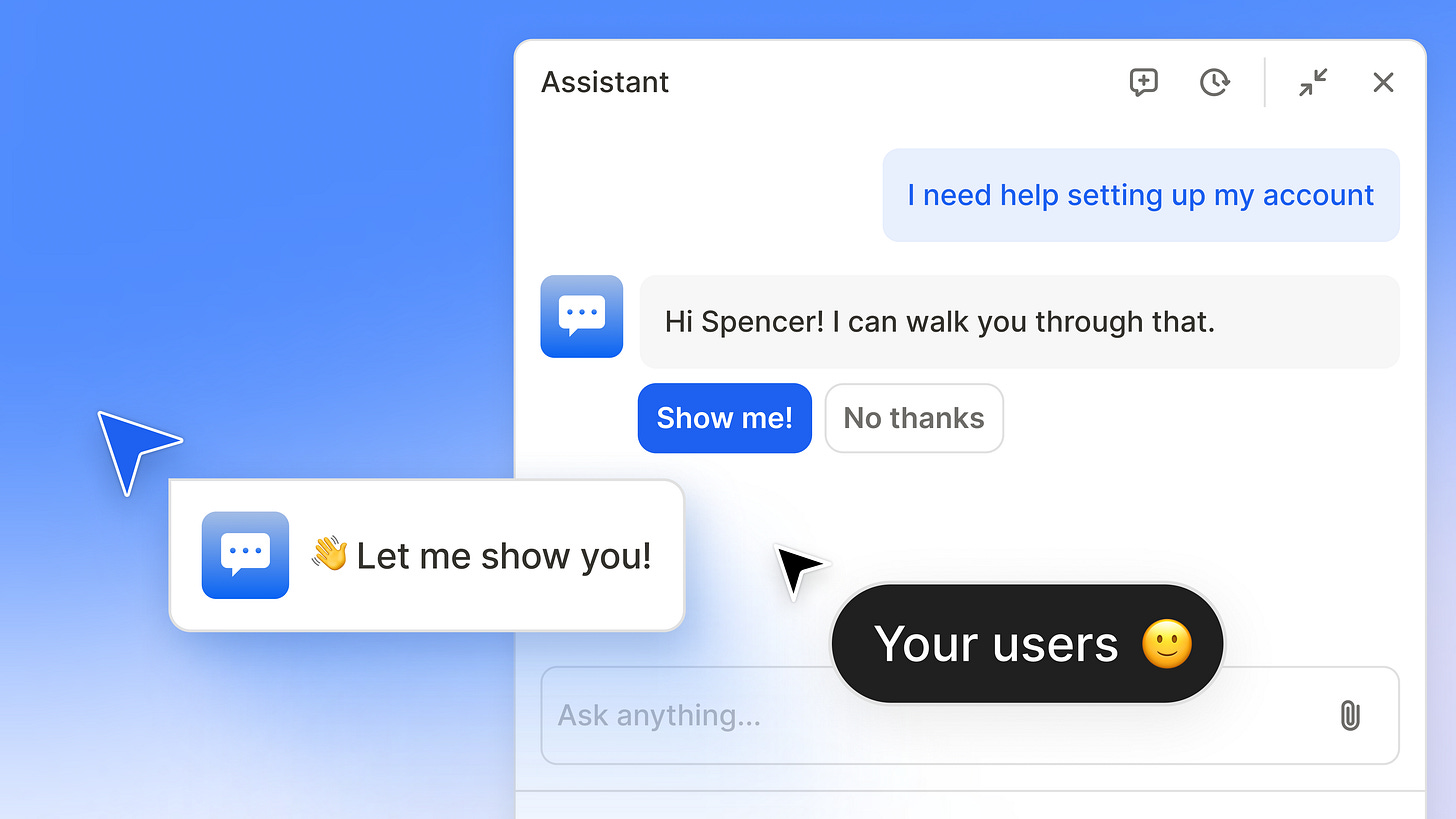 AI Assistant can go further. It can trigger in-product walkthroughs, guide users step-by-step through tasks, and help them move forward without leaving the experience. Instead of switching tabs, interpreting documentation, and trying to replicate instructions, users stay in flow and continue making progress.