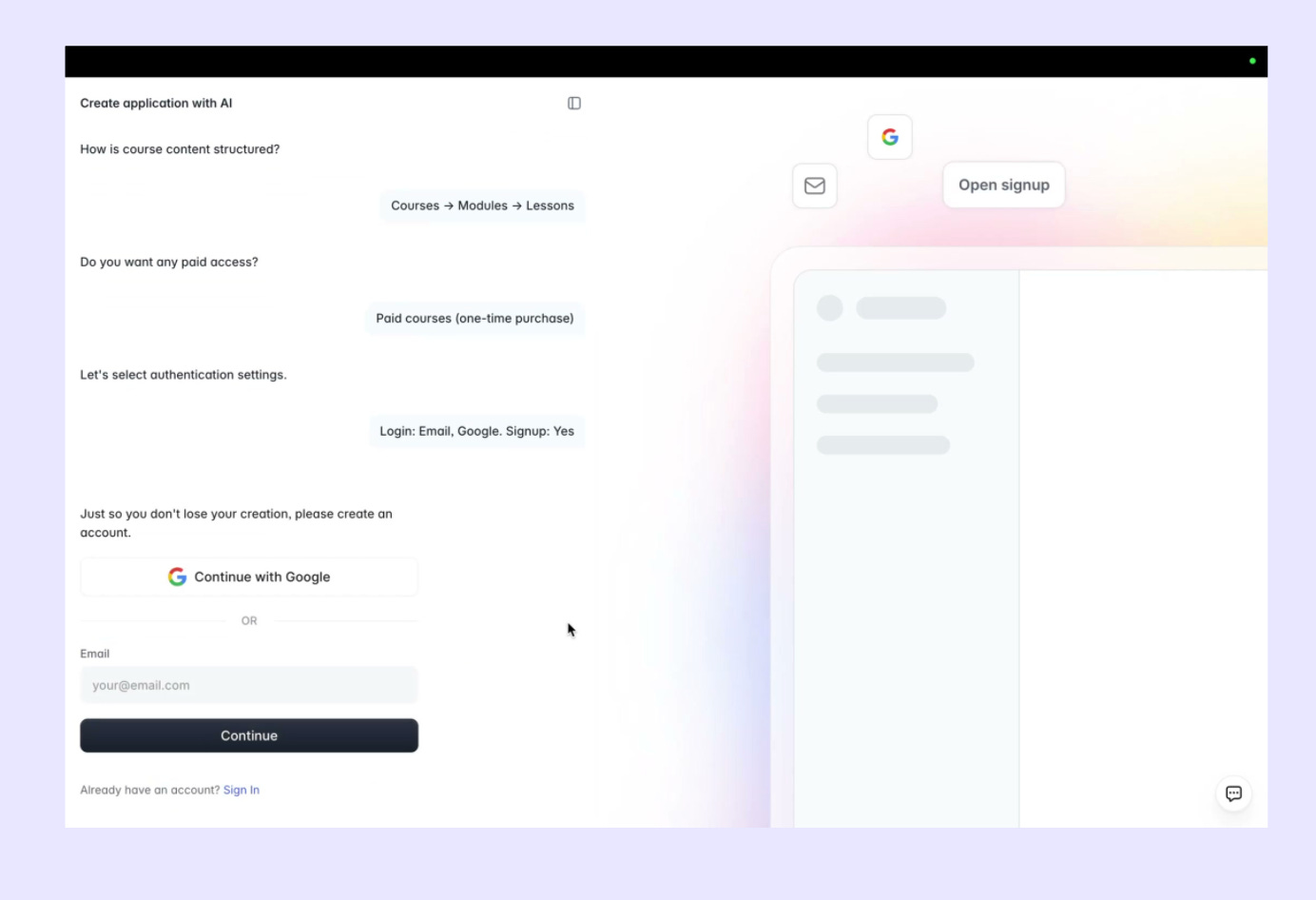 No sign-up interruption